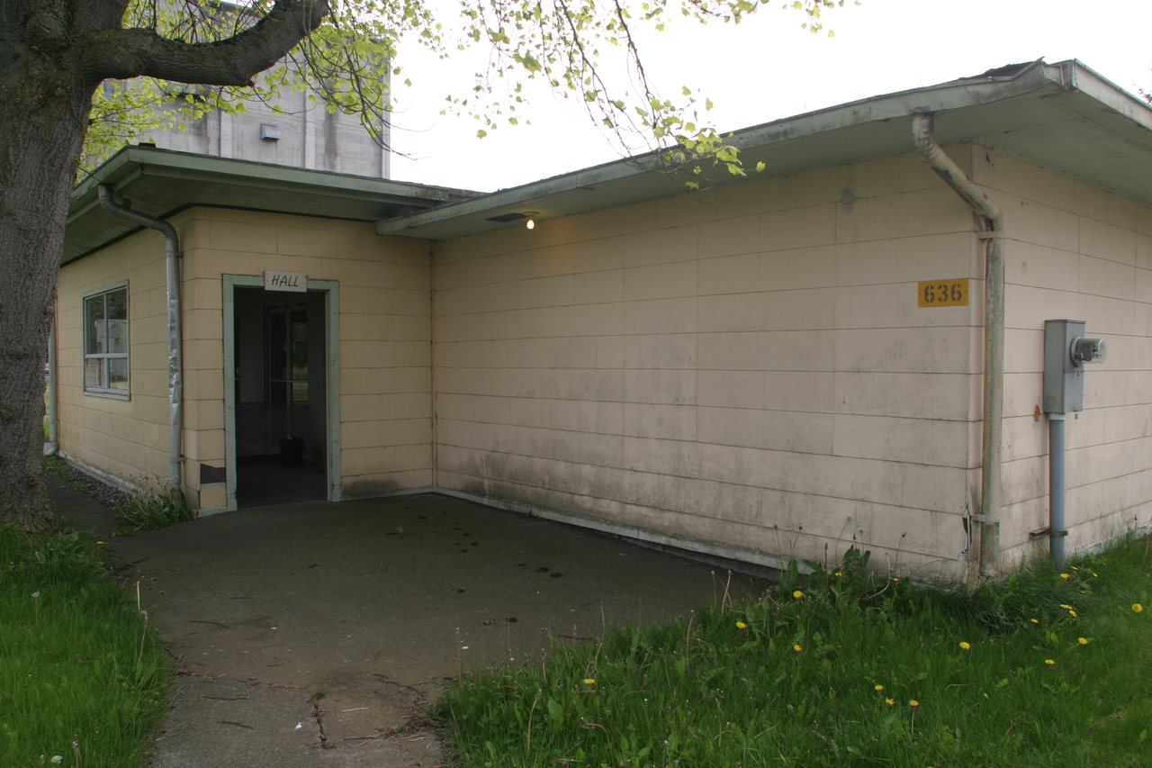 Back of orderly room (532) and chow hall (blue, 534). Barracks right of chow hall were BOQ (630).