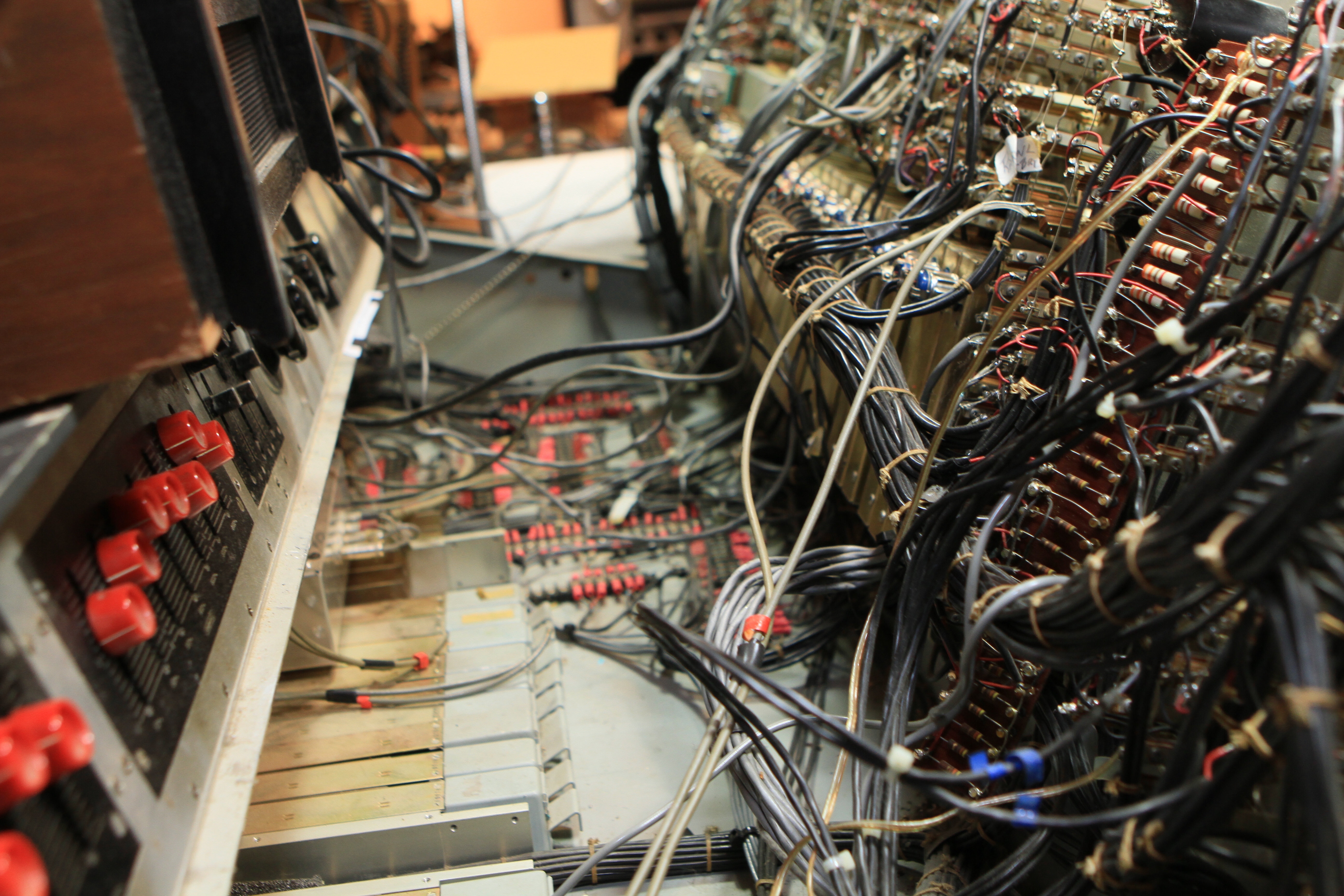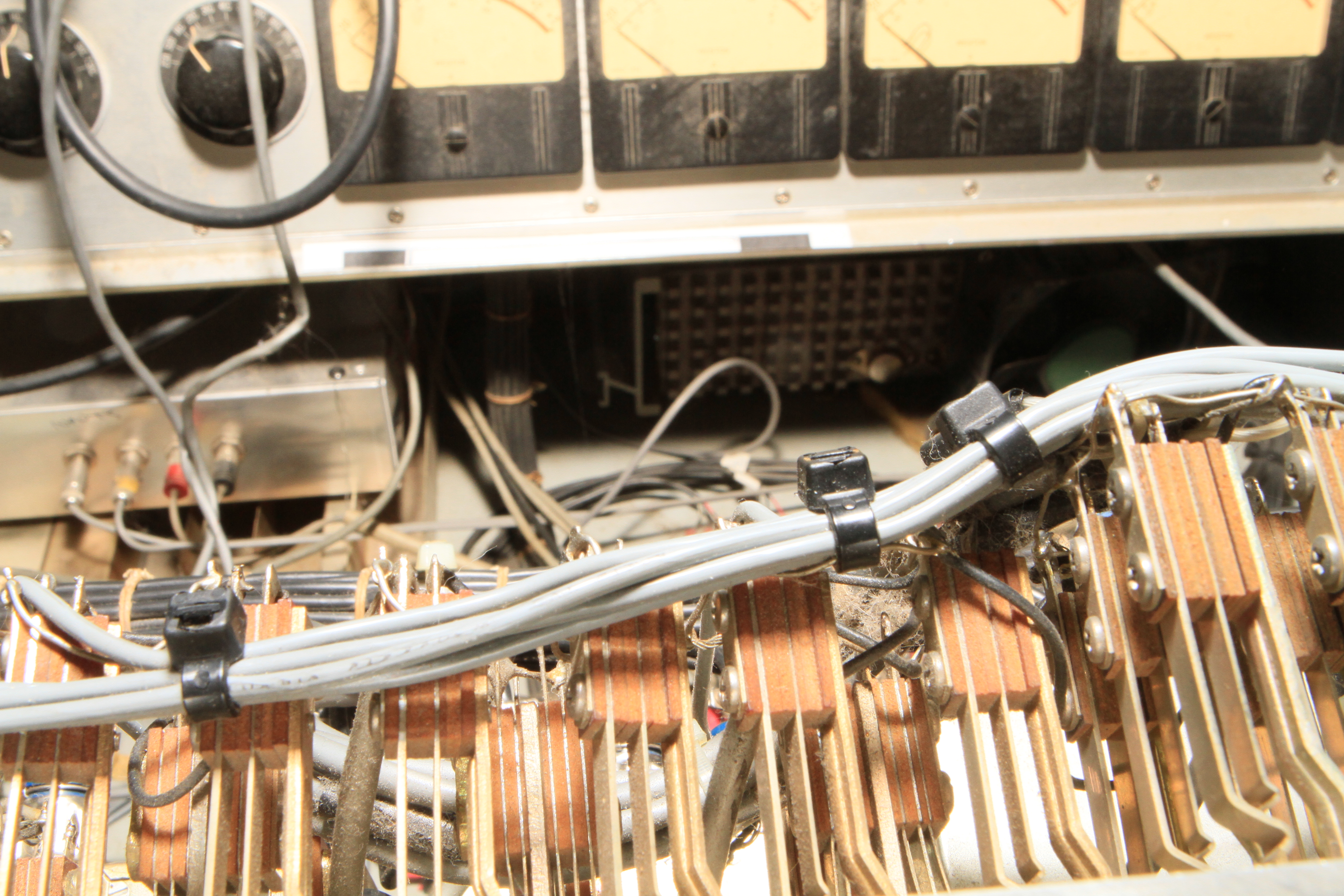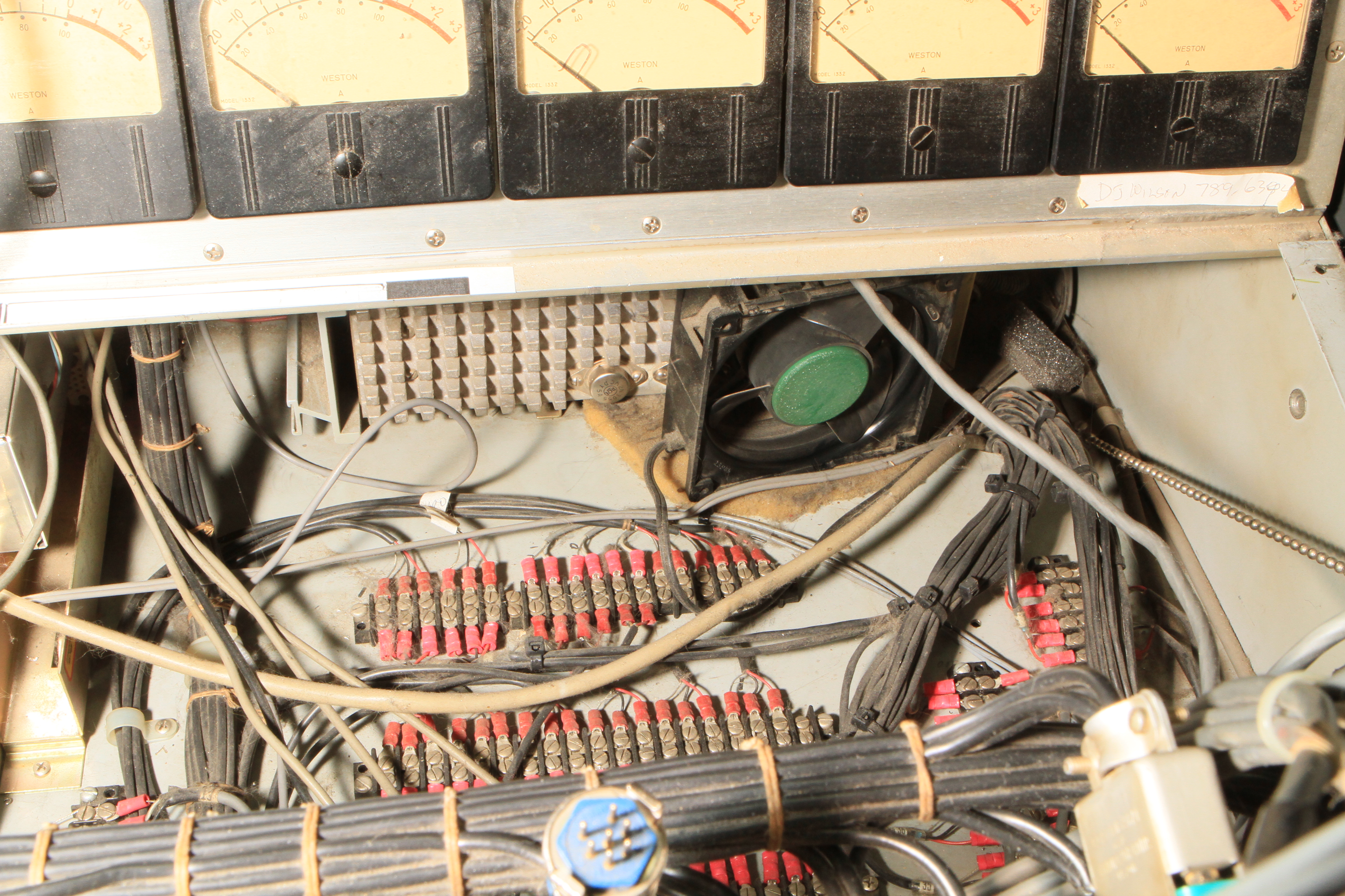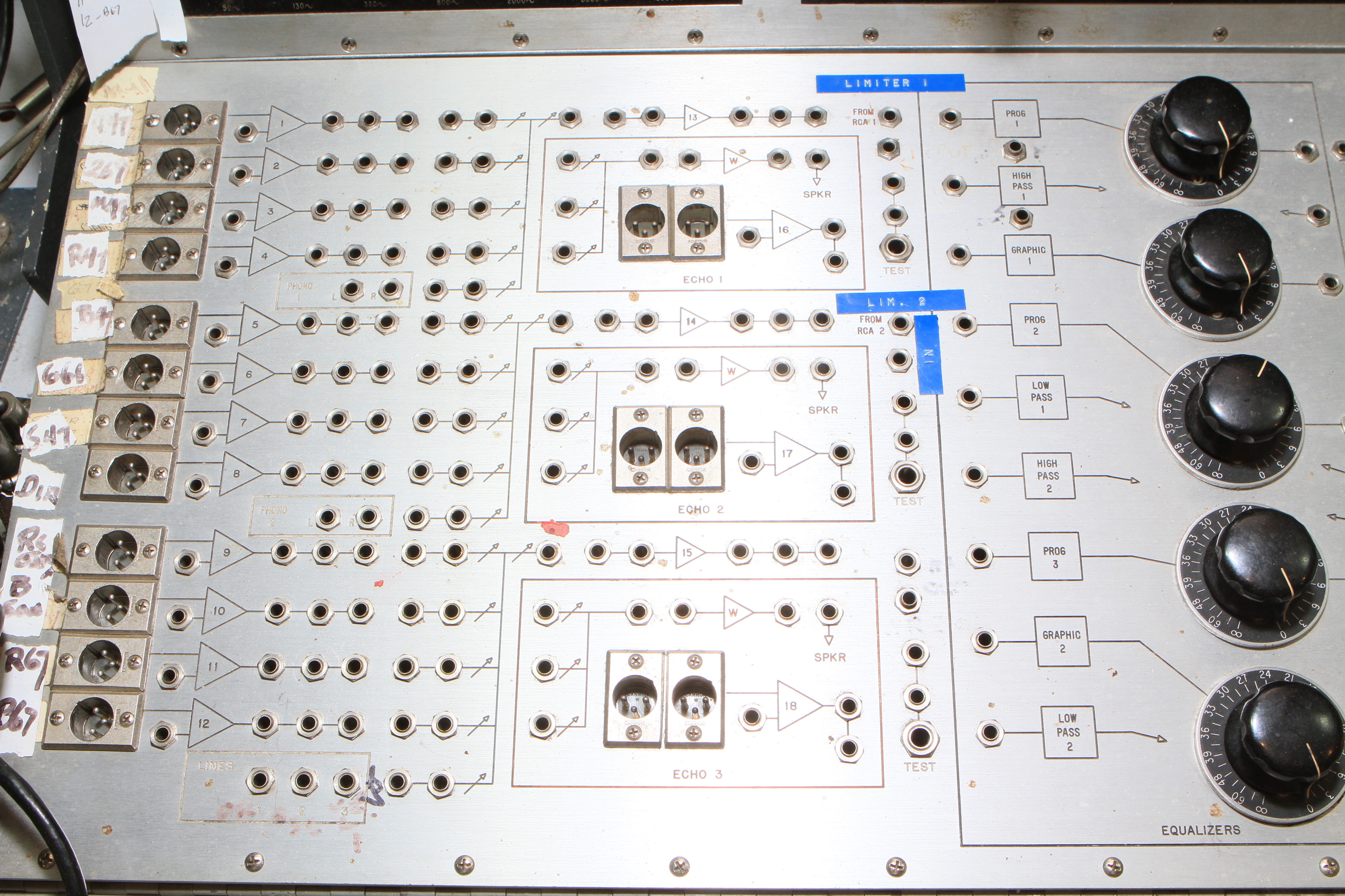 The ConsoleKearney's console was custom made for him by Glenn White Jr. and Ken Heidt using Langevin components. It's a classic piece of minimalist engineering. I needed to document the mixer/console so it could be sold. This is a really unusual piece because there isn't any switching; the signal flow diagram is engraved into the panel, and all of the signal flow is via TT patch cords. This is really intuitive to anyone with any signal flow sense, and probably completely impenetrable by anyone who really doesn't understand signal flow. In it's usual operating mode, STUN, it's covered with patch cables, and only the area where the faders are is really accessible. There's no per-channel equalization because even the Langevin 251 program equalizers were $270 and the EQ253 graphic equalizers were $600... and those were in 1963 dollars! Thus, this mixer has 2 graphic equalizers and 3 program equalizers, and you patch them in where they are needed. The result is a mixer whose signal path is about as minimalist as you could ever make, and there's no extra BS anywhere. This suited Kearney's style to a T. Finally, don't forget that in 1965, when this mixer was built, the studio had a 3-track machine. It was some time before he got an 8-track, and that's as far as it ever went.The Rest of the StoryIn the end, nobody came forward with a serious Jones for this mixer, and it went on eBay. That got it the exposure needed to find someone to buy it. And buy it they did. Finally, in late April, I got the mixer crated, and it was shipped to its new home in Nashville, where it will go on making music for its new owner. Oddly, the new owner is a past resident of the Seattle area and knew about Kearney and the mixer.Someone asked why the mixer wasn't headed for EMP. I think that everyone involved really wanted to see it go on making music. At EMP, it would have just become another artifact, something to be seen but not heard. That's the hard way to check out of this world. |